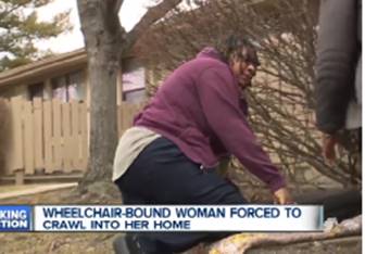 This dire situation forced Ms. Kelsey to redouble her effort to locate a contractor to install a temporary, removable wheelchair ramp. These efforts received media attention from WXYZ Channel 7 in Detroit. February 21, 2017: Handicapped woman with no ramp forced to crawl to enter her home. Thanks to the televised news coverage, a volunteer contractor agreed to construct and install the ramp, and raised contributions to cover the cost of the ramp.